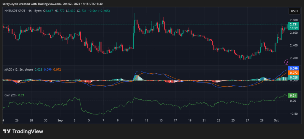 - ارتفع سعر سهم هيليوم (HNT) بأكثر من 8%، ليتداول عند 2.72 دولار أمريكي.