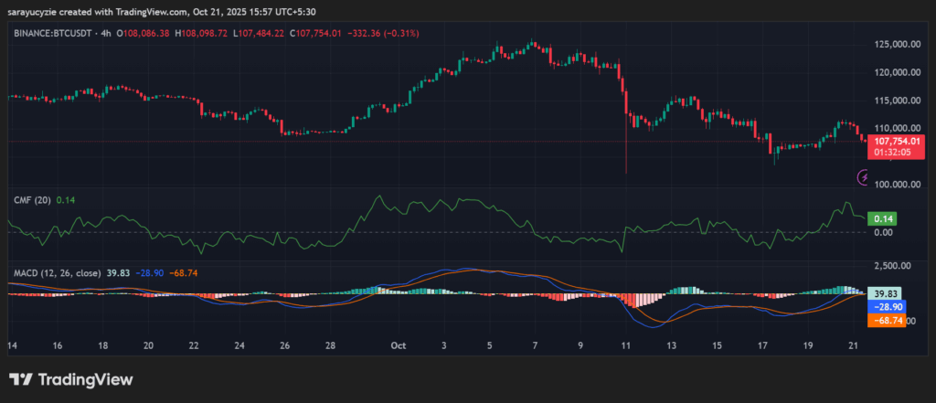 تجدر الإشارة إلى تدفق رأس مال البيتكوين، مع مؤشر تشايكين لتدفق الأموال (CMF). يقع المؤشر عند 0.14، مما يشير إلى ضغط شراء معتدل في سوق البيتكوين. يتدفق المال إلى البيتكوين، مما يُظهر تراكمًا ومعنويات إيجابية، ولكنه ليس قويًا بما يكفي للإشارة إلى اتجاه صعودي.
