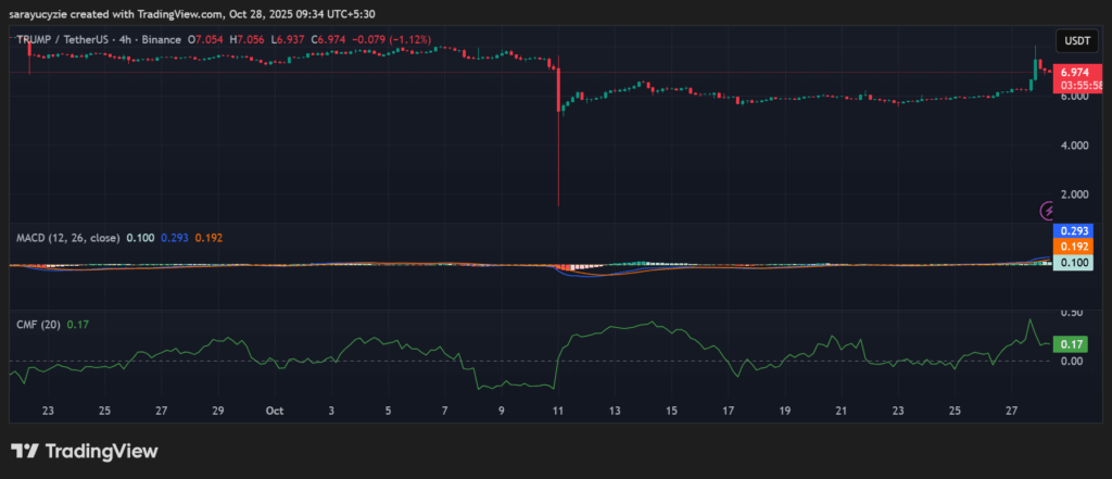 بالإضافة إلى ذلك، يبلغ مؤشر تشايكين للتدفق النقدي (CMF) لعملة ترامب 0.17، مما يشير إلى ضغط شراء معتدل. كما أن السيولة تتدفق إلى الأصل. كلما اقتربت القيمة من +1، زاد اتجاه التراكم قوة.