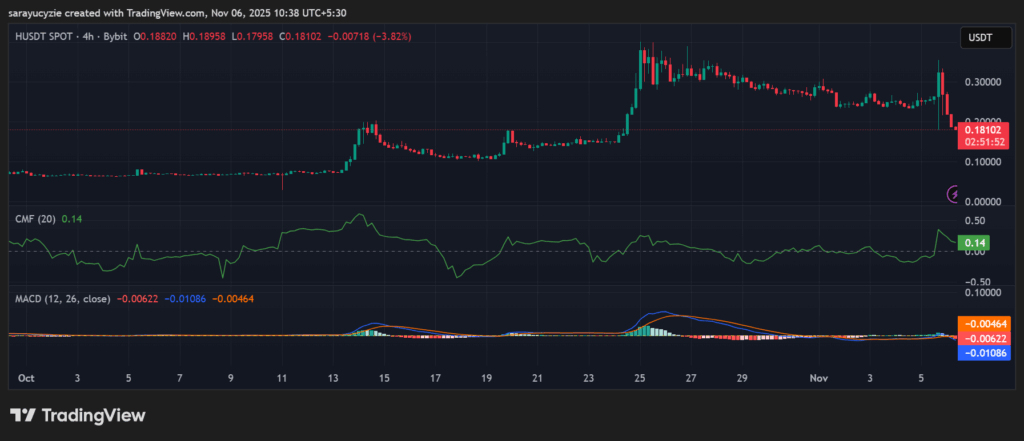 تشير قراءة مؤشر Bull Bear Power (BBP) عند -0.10738 إلى أن البائعين هم المسيطرون حاليًا. ونظرًا لأن القيمة سالبة، فإن سعر H يتداول دونها. كما يحتاج المضاربون على الارتفاع إلى دفعة قوية لاستعادة هيمنتهم. إضافةً إلى ذلك، يشير مؤشر القوة النسبية اليومي لسهم Humanity Protocol عند 34.60 إلى أنه قد يقترب من منطقة ذروة البيع، وأن السوق يميل نحو الهبوط. وهناك احتمالية لحدوث ارتداد في حال استمرار ضغط البيع.