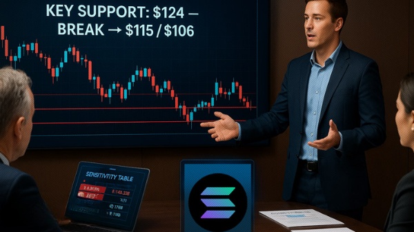 يوضح الرسم البياني للمحلل أن Solana يتحرك حاليًا بشكل جانبي، حيث يُظهر دعمًا هامًا عند 124 دولارًا أمريكيًا. ومن المرجح أن يؤدي فقدان هذا المستوى إلى تصحيح أعمق نحو هذه المناطق المنخفضة، مع ظهور مستويات دعم قوية تالية بالقرب من منطقتي 115 دولارًا أمريكيًا و106 دولارات أمريكية.