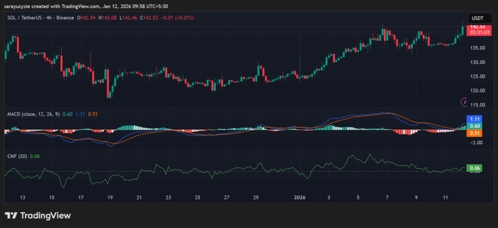 بالتدقيق في الرسم البياني للتداول على مدى أربع ساعات، ومع سيطرة المشترين على سعر سولانا، من المرجح أن يرتفع السعر لإعادة اختبار مستوى المقاومة عند 145.07 دولارًا. وقد يظهر التقاطع الذهبي إذا اشتد الضغط الصعودي، مما قد يدفع سعر الأصل نحو 148.30 دولارًا أو حتى أعلى.