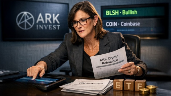 قامت شركة ARK Invest، بقيادة كاثي وود، بتعديل مركزها في صناديق المؤشرات المتداولة للعملات الرقمية، حيث اشترت حوالي 716 ألف سهم من شركة Bullish، بقيمة تتراوح بين 17 و18 مليون دولار، بينما باعت 119 ألف سهم من شركة Coinbase، بقيمة تقارب 17.4 مليون دولار. وتم تنفيذ هذه الصفقات عبر ثلاثة صناديق مؤشرات متداولة: ARK Innovation ETF، وARK Next Generation Internet ETF، وARK Fintech Innovation ETF.