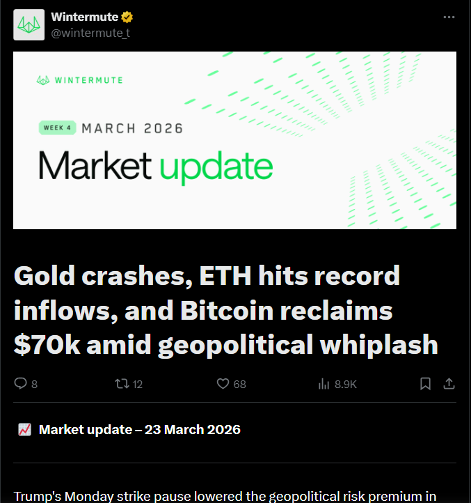 لاحظ وينترموت أن انخفاض الضغوط الجيوسياسية من شأنه أن يُسهم في تخفيف حالة عدم اليقين، وربما تحسين السيولة في مختلف أسواق الأصول المالية والرقمية حول العالم. ولاحظ المحللون أن تحسن ثقة السوق من شأنه أن يجذب المزيد من تدفقات رأس المال إلى مختلف الأصول عالية المخاطر، بما في ذلك سوق البيتكوين وأسواق العملات المشفرة الأخرى عالميًا. كما لاحظوا أن سوق البيتكوين غالبًا ما يتأثر بالأحداث الاقتصادية الكلية المختلفة، لا سيما تلك المتعلقة بأسواق الطاقة والأحداث الجيوسياسية العالمية. ولاحظ وينترموت أيضًا أن عودة حركة الشحن إلى وضعها الطبيعي من شأنها أن تُشير إلى انخفاض الضغوط الجيوسياسية، مما يُعزز أداء مختلف أسواق الأصول الرقمية عالميًا.